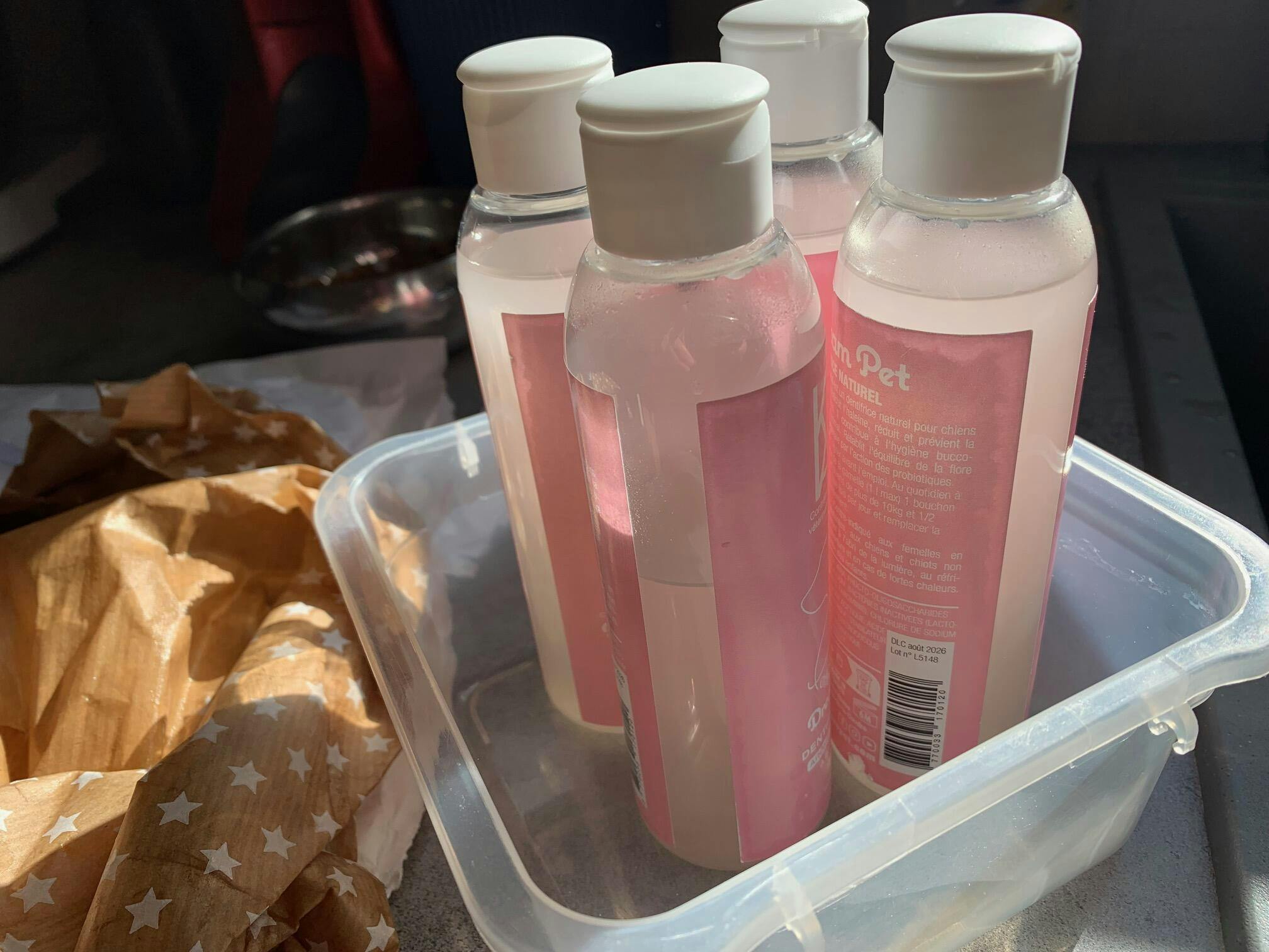- Diluer 1 bouchon pour le chien dans l'eau de la gamelle